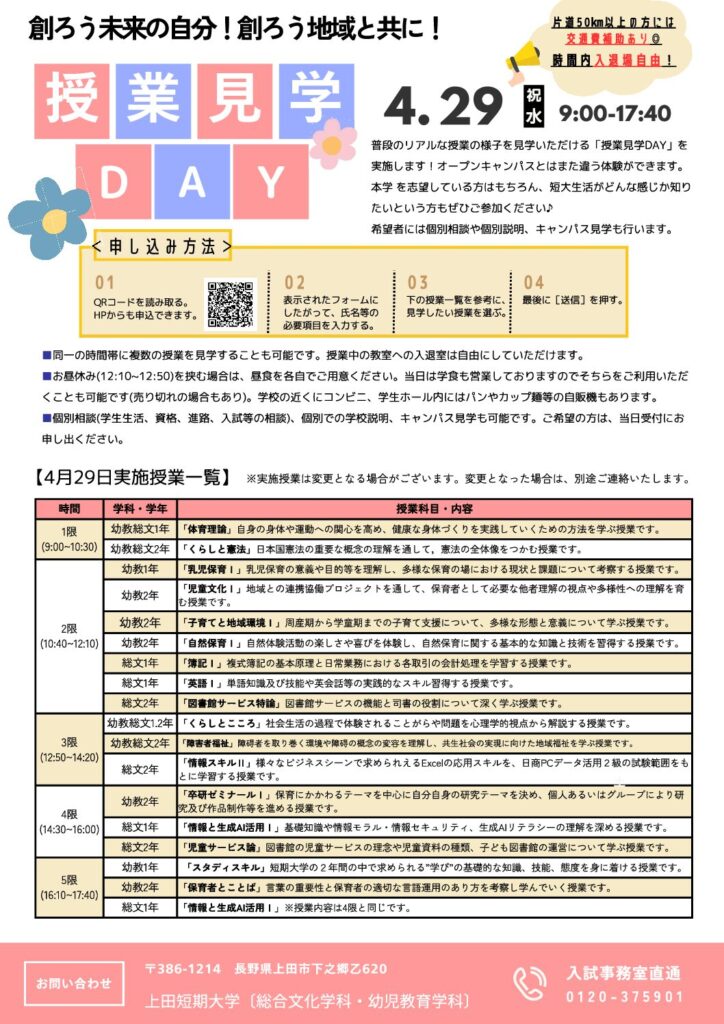 上田短期大学の普段の授業の様子を見学できる一日です!